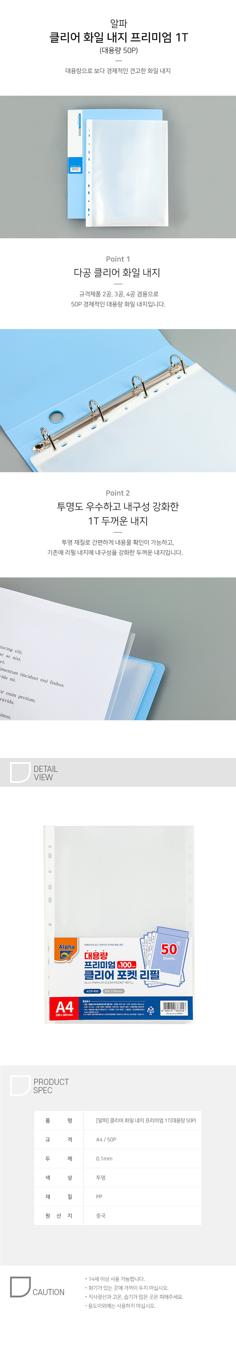 알파 프리미엄 클리어포켓리필 0.1mm 50P(ACP-R10) 요약정보 및 구매