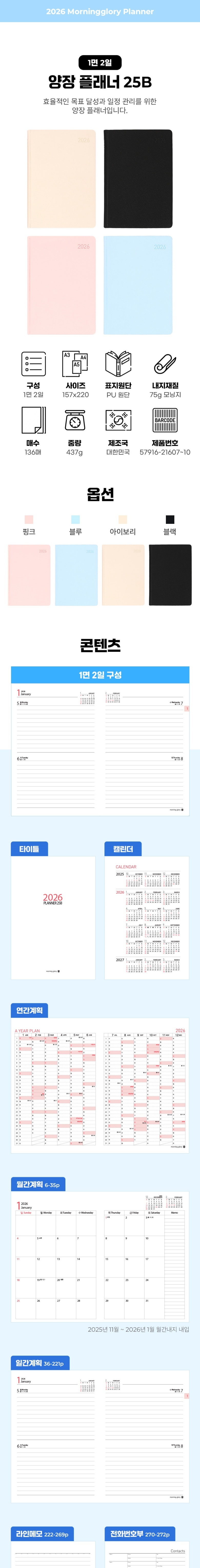 모닝글로리 15000 양장플래너 25B 2026년 1면2일 다이어리 요약정보 및 구매