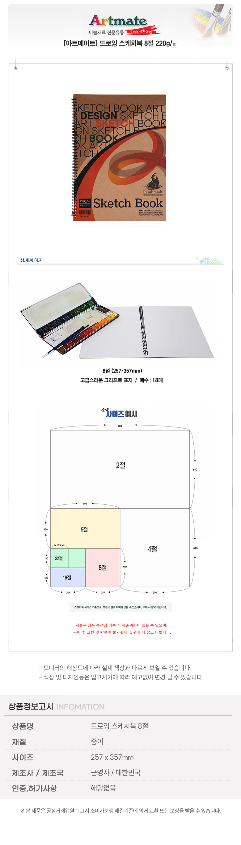 아트메이트 드로잉 스케치북 220g 8절 요약정보 및 구매
