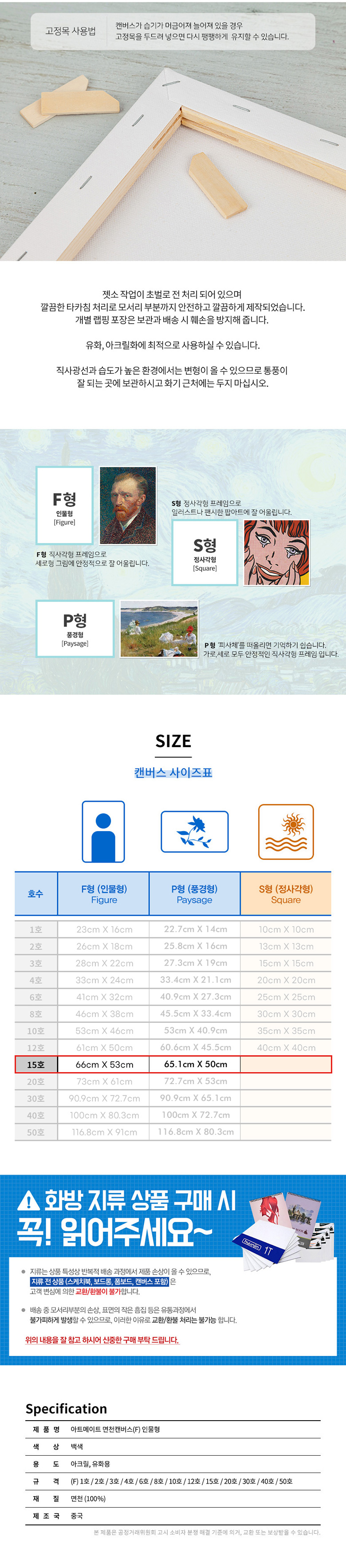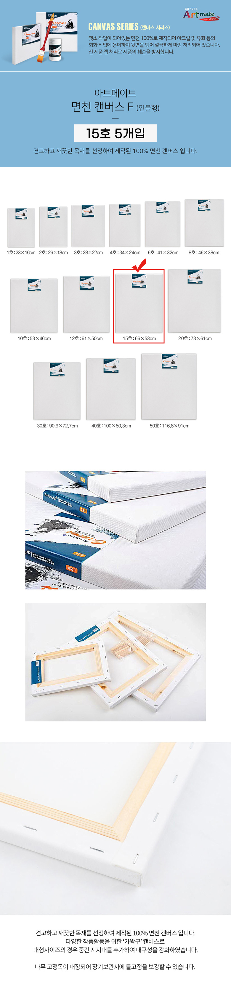 아트메이트 전문가용 면천 캔버스 F형 인물형 15호 5개입 1BOX 요약정보 및 구매