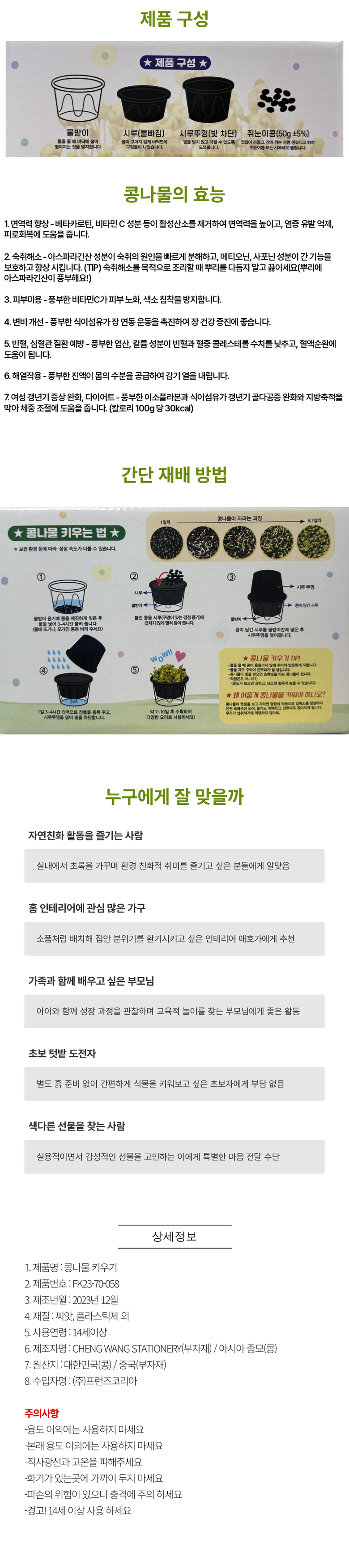 7000 프랜즈 콩나물 키우기 과학학습 체험학습 관찰용 학습용 > 식물기르기