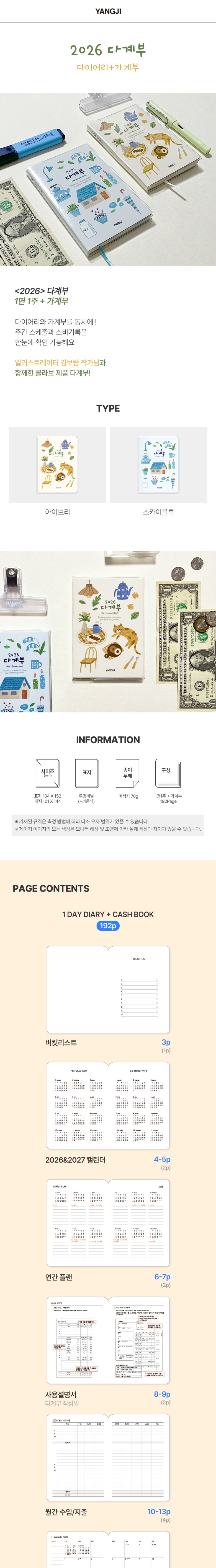 • 양지사 2026년 양지다이어리 가계부 다계부 1면1주