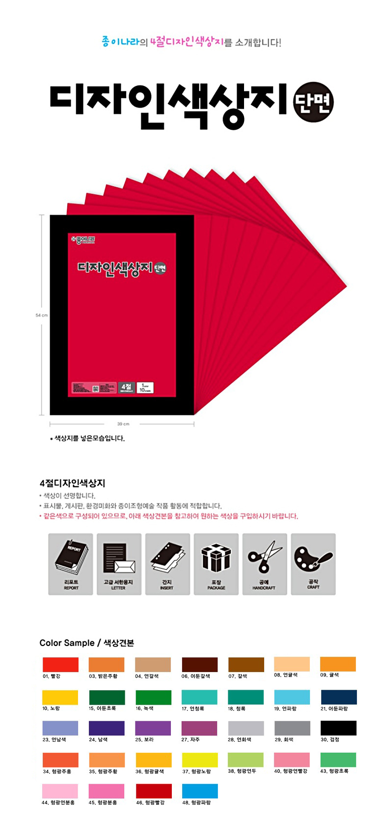 종이나라 4절 디자인 단면 색상지 10매 요약정보 및 구매